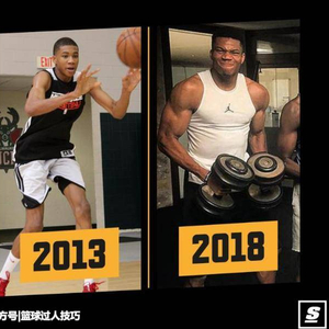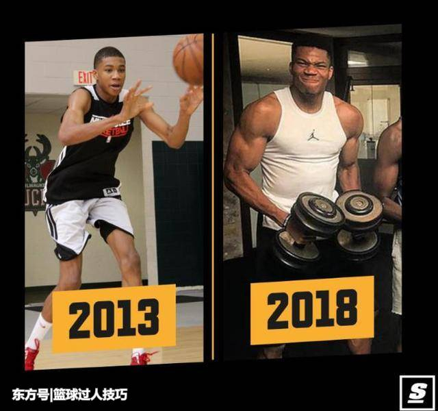 看字母哥13年与18年对比图,肌肉大一倍!联盟第一人指日可待