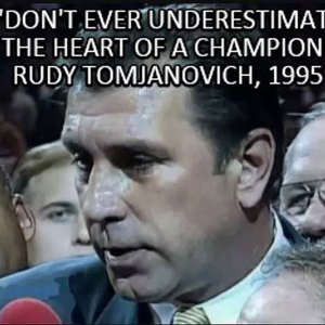 此后,火箭越打越猛,连下三场,以4-0横扫了魔术夺得了总冠军。鲁迪-汤姆贾诺维在面对记者的现场采访时说出了那段经典的话语,他说道:“我们一路走来都不被看好,对于那些不相信我们的人,我只有一句话要说,永远不要低估了一颗总冠军的心。”
