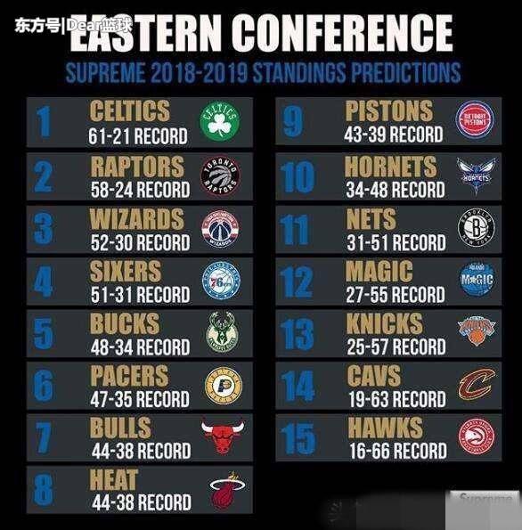 近日,美国媒体就根据东部各支球队的实力,预测了新赛季东部联盟的战绩排名。