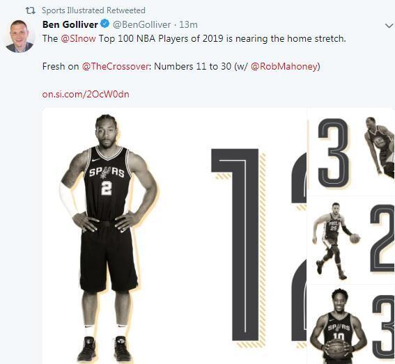《体育画报》本次排出的第11-30为球员名单分别是:11、保罗乔治,12、科怀伦纳德,13、德拉蒙德格林,14、鲁迪戈伯特,15、达米安利拉德,16、艾尔霍福德,17、凯里欧文,18、约基奇,19、唐斯,20、奥拉迪波,21、阿尔德里奇,22、克莱汤普森,23、凯尔罗瑞,24、约翰沃尔,25、戈登海沃德,26、本西蒙斯,27、布拉德利比尔,28、米德尔顿,29、朱霍乐迪,30、德罗赞。