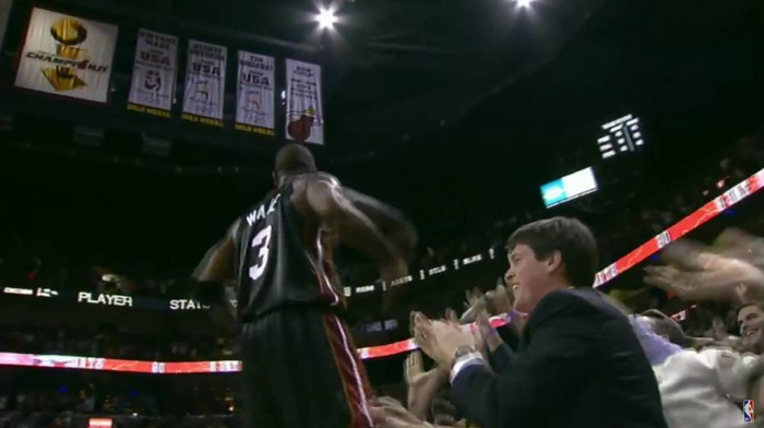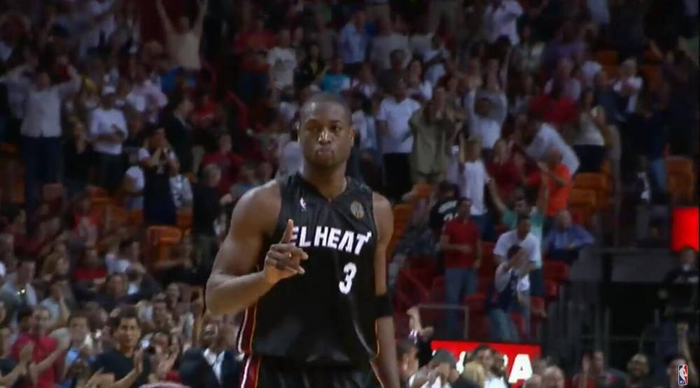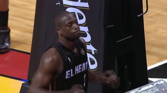 韦德跳上技术台肆意庆祝,This is my house!闪电侠是何等的霸气啊!!!