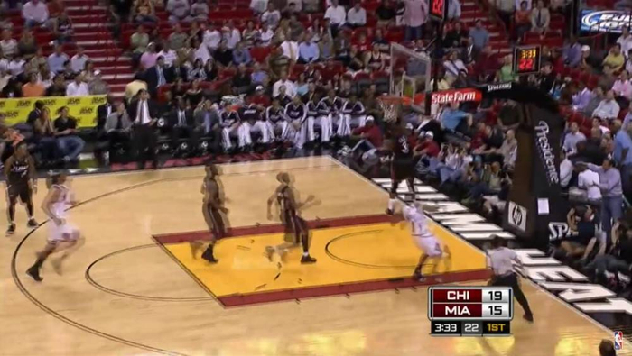 随后韦德带球突破过掉罗斯杀入禁区,面对布拉德-米勒的协防上篮得手,让热火取得两分优势。不过萨尔蒙斯很快回敬一球,为公牛追平比分。随后哈斯勒姆出手不中,公牛获得了绝杀机会!