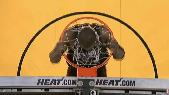 全场比赛最经典的瞬间到来:萨尔蒙斯持球突破背后拉球被哈斯勒姆干扰,韦德上前包夹成功抢断快速来到前场,在弧顶处骑马射箭出手三分,皮球空心入网!韦德完成了抢断三分压哨绝杀,结束了这场荡气回肠的双加时鏖战!