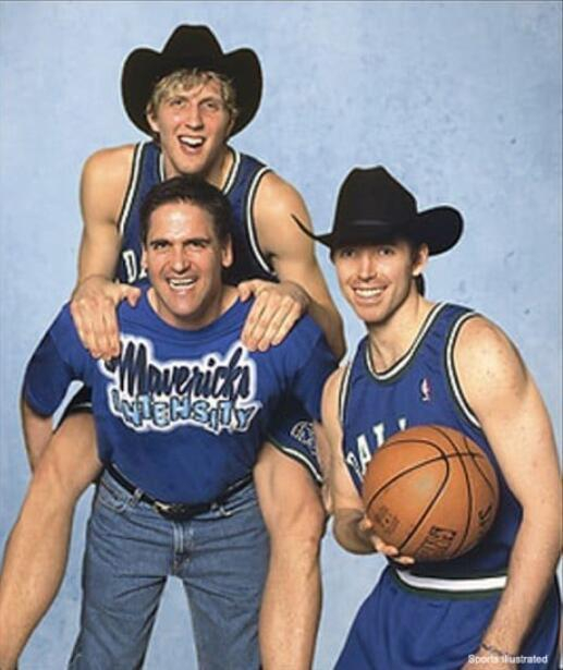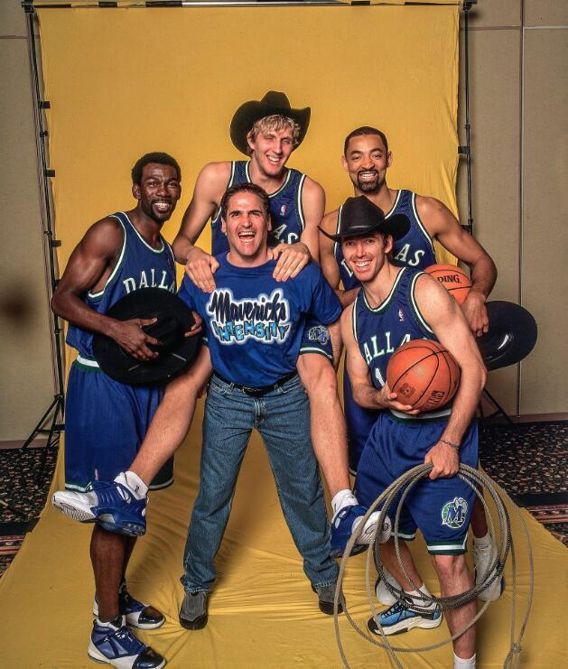 东契奇和史密斯 cosplay 德克 - 诺维茨基和史蒂夫 - 纳什的经典照片。