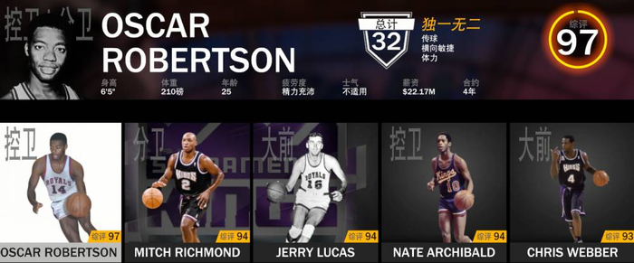 控卫:奥斯卡-罗伯特森(1960-1970赛季)能力值97