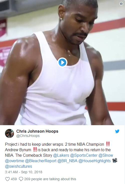 训练计划必须保密,两届NBA冠军得主!安德鲁-拜纳姆!回来了,是时候回归NBA了。
