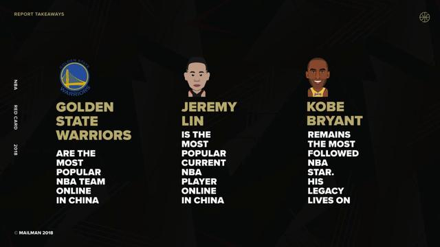 日前,邮人体育正式发布 NBA RED CARD 2018,该报告展示了目前中国线上最受欢迎的 NBA 球队和球员。这是邮人体育连续第二年对 NBA 球队、球员和赞助商的线上数据表现进行的全面分析,如通过对比两支 NBA 球队的线上营销策略和方法,归纳总结出其可借鉴的运营模式和在华推广成功的关键因素。邮人视角:该报告指出,NBA 球员可以自由地利用 NBA 联赛在中国的既有声量和优势,开拓自己的新业务。最近的两个例子是 2018 年 6 月中国民族品牌安踏和克莱 · 汤普森之间达成的 10 年 8000 万美元的合同以及德怀恩 · 韦德与中国体育品牌李宁的终身合作。 同时,特许经营收入方面,如球衣销售、赞助合作和体育旅游领域的竞争,将更加激烈。