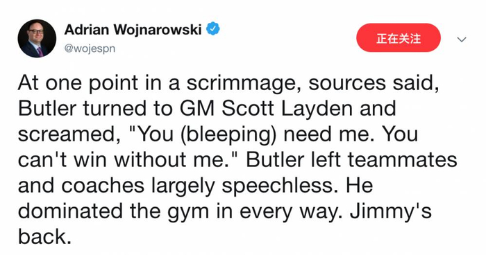 是没错,不过和科比那时比起来,巴特勒这次已经搞得满城风雨了,而且直接针对的是队里另两位“球星”。