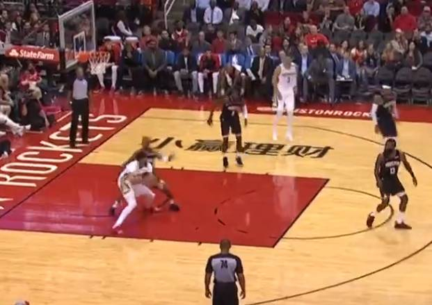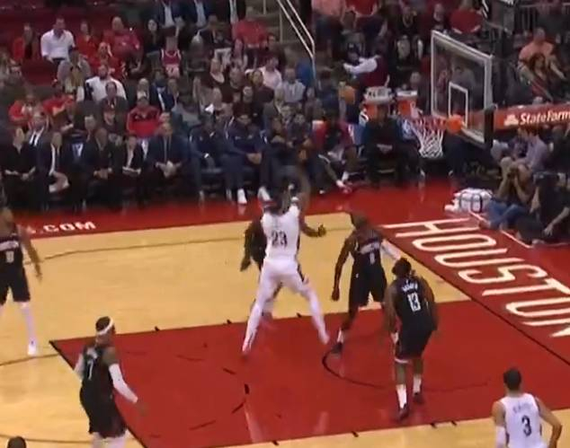 哈登在罚球线附近单防浓眉,上半场的比赛里,火箭的防守者就不会强硬的防守,下半场上来哈登做出了特别强硬的态度,就是往上强顶果断绕前,让浓眉很难接球,哈登这样强硬的表现也成功的破坏了鹈鹕的这次进攻。