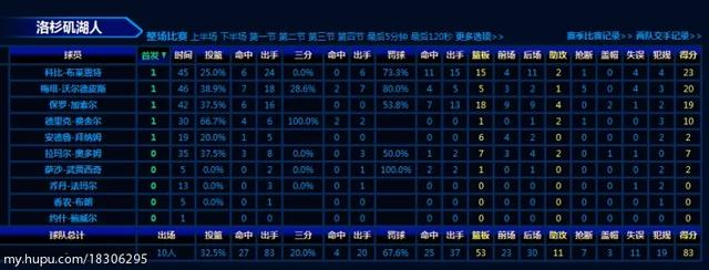 全场比赛科比共抢15个篮板,加索尔全场18个篮板,两人前场篮板共抢13个,而凯尔特人全队才抢了40个篮板,只有8个前场篮板,在篮板球与二次进攻方面略逊与湖人!