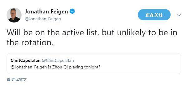 火箭记者费根报道“周琦已经进入激活名单,但是进入轮换阵容的可能性很小。”无论如何,对于周琦都是一大利好,缺兵少将的火箭此刻正是需要内线的时刻,相信德安东尼已经心中有数,周琦的勤奋大家都看在眼里,期待尽早看到周琦的场上表现。