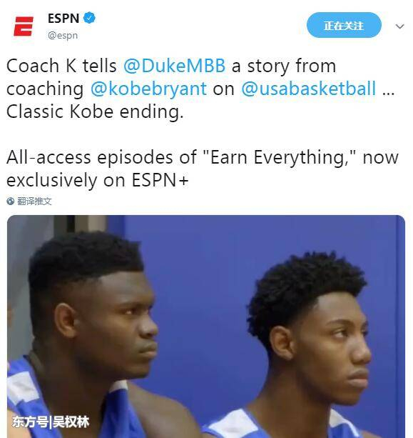 NCAA男篮的常规赛即将拉开帷幕,大学名帅老K教练日前在对杜克大学的年轻人进行了一番“鸡汤式”的指导。在这次训练课上,迈克-沙舍夫斯基讲述了科比在国家队时的一件趣事,用以激励年轻球员向科比学习,积极向上,成就传奇。