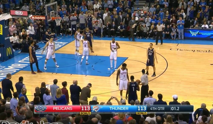 随后杜兰特站了出来,KD接连飚进两记外线三分,为雷霆续命。比赛在最后阶段进入高潮,鹈鹕依靠安德森和浓眉的罚球继续保持优势,终场前2.8秒以113-110领先对手!暂停回来,威少弧顶出手造成庞德克斯特犯规,雷霆主控三罚三中,比分来到了113-113,只留给鹈鹕1.3秒的时间!
