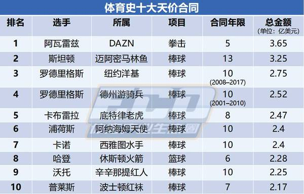 延伸阅读:5年3.65亿美元合同创体坛纪录!各大联盟天价合同了解一下?