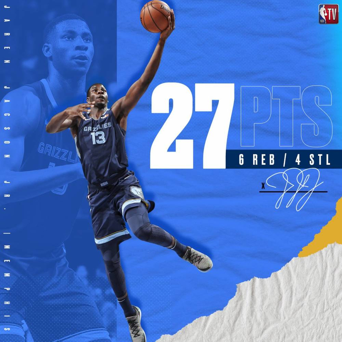 1、贾伦-杰克逊(灰熊 4号秀) 27分