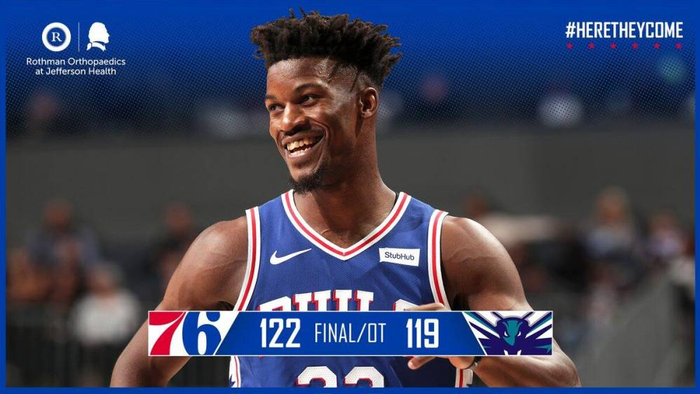【巴特勒三分绝杀 恩比德33+11 沃克60分 76人加时险胜黄蜂】