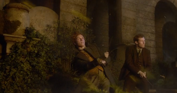 如果说,《哈利波特》的一个孤儿对抗大魔王的故事,那么《神奇动物在哪里》我们将见到一对CP反目成仇,互相想要杀死对方。没错,他们一个是《哈利波特》中霍格沃兹的校长邓布利多,一个是前任黑魔王格林德沃。这对情侣相爱相杀,一直持续了多年,我们虽然在《哈》中知道,最终以邓布利多获胜,格林德沃被囚禁告终,然而从格林德沃最终不惜身死阻止伏地魔进入邓布利多的坟墓中,我们可以窥见当年那复杂难辨的爱恨情仇。