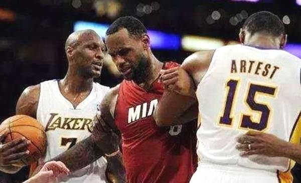 第二,阿泰斯特。阿泰斯特的防守和他的风格一样,非常暴力,经常就会把人误伤。詹姆斯碰到阿泰斯特也一样,会非常头疼,在一次比赛中,阿泰斯特就直接把詹姆斯的头套打飞了。
