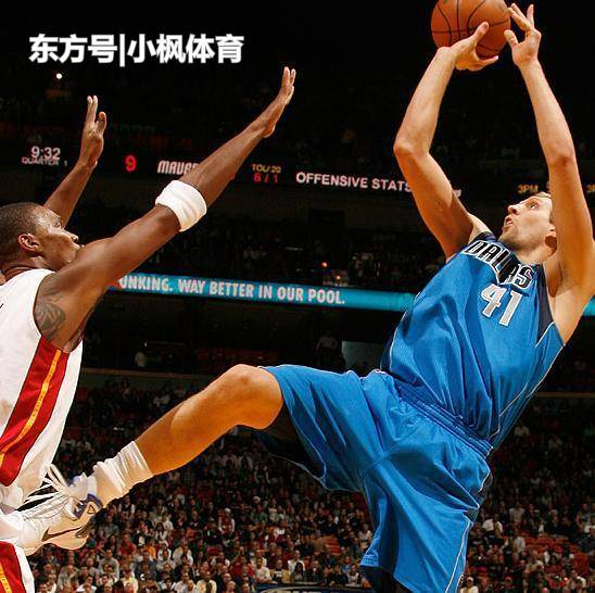 金鸡独立是被诺维斯基诺天王打上标签的招牌进攻方式,以诺天王2米13的身高再加上幅度如此之大的后仰,防守的波什那可叫心里苦啊。诺天王可是在NBA砍下三万多分的超级巨星,要知道整个NBA历史也只有七个人砍下三万分。不过诺天王的这招现在很容易被裁判吹进攻犯规。