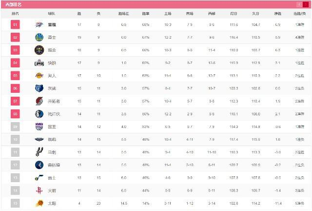 NBA常规赛已经过了将近三分之一了,东部早已局势明朗,而西部直到现在依然在混战,各球队之间胜场差非常小,谁都有可能当第一,谁也都有可能垫底,正因为这样,有球迷调侃说:“猛龙真倒霉,每天都在打西部第一,哈哈!”虽然球迷说的有点夸张,但是这恰恰也说明了西部各队之间竞争的是有多么的激烈!