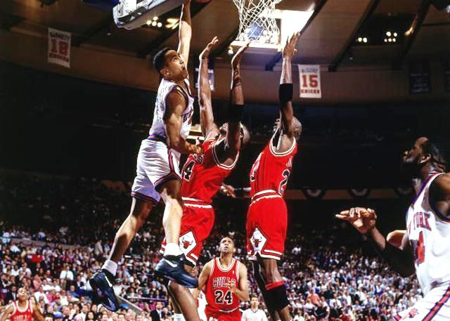 在刚到纽约试训的时候,斯塔克斯像个疯子一样,第一次见面就要隔扣当时的纽约之王尤因,最后被后者一巴掌给拍在了地上,并且扭伤了膝盖。但他也算因祸得福,因为当时联盟有规定,试训期间如果受伤,那12月底之前是不允许离队的。在这段时间里,他得到莱利的赏识,并且慢慢在尼克斯走上了职业生涯巅峰。1993年隔扣乔丹之后,他们又在1年之后击败了没有乔丹的公牛,与火箭队会师总决赛。