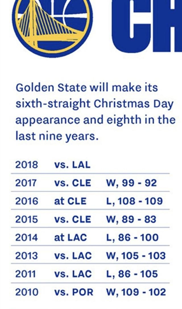 但是这些问题其实在赛季初期就已经有所体现,这一个圣诞夜的输球很多球迷就已经猜到了这样的规律:勇士自从2010年起有幸加入到联盟的圣诞大战之中,期间除了2012年没有参加之外,这9年当中的八次圣诞大战很有规律的是胜、然后负,这些年来无一例外!