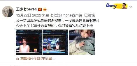 三十六行每行都不是容易的事情,不止穿衣服不能自己做主,就连在平时的上下班时间也非常不准时。当时作为NBA主持解说比较出名的小七也在自己的社交圈表示如今这个情况真的比较难受并且还说,又一次出现在了她喜爱的游戏中,一没镜头就会赶紧裹起来,今天下午1点30开始哦,猜猜几点才能下班!可想而知这样作为他们的这个行业真的非常不易!