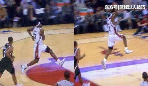 大风车还不过瘾,拉文再给你玩个罚球线起跳胯下换手!完成这次暴扣之后,整个多伦多都沸腾了!人类竟然也能做出这种动作!真是令人难以置信!
