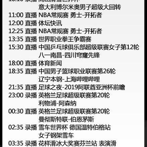 下午13时35分,CCTV5直播世界职业拳王争霸赛。15时30分,CCTV5直播中国乒乓球俱乐部超级联赛女子第12轮八一南昌对阵四川穹窿先锋的比赛。晚18时35分,CCTV5将切入2018-2019赛季CBA常规赛直播时间,第26轮的一场焦点大战中,卫冕冠军辽篮主场迎战上海男篮。拥有十位新老国手和两位冠军级外援的辽篮已经豪取14连胜,排在领头羊广东男篮之后位列积分榜次席。排名第八的上海男篮主要依靠大杀器弗雷戴特,实力明显逊色,辽篮很可能继续连胜脚步。