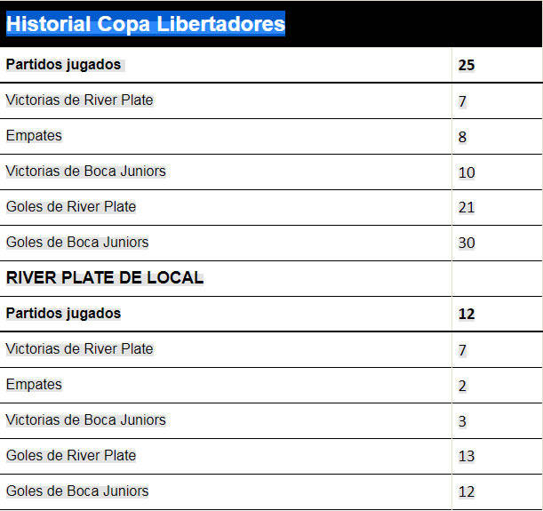 3.河床29次洲际赛事对阵博卡8胜(23球)11平10负(31球)。5次(两回合的淘汰赛)洲际赛事决赛交锋2次晋级3次失利。