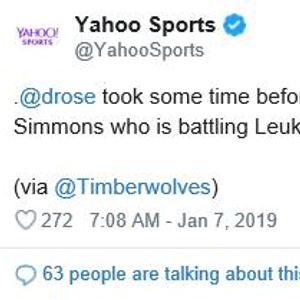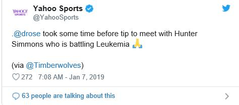 美国慈善基金组织Make A Wish Foundation告诉了罗斯的经纪人,双方一起帮助西蒙斯实现了他的心愿,为他提供了一张今天森林狼队对阵洛杉矶湖人队的门票。