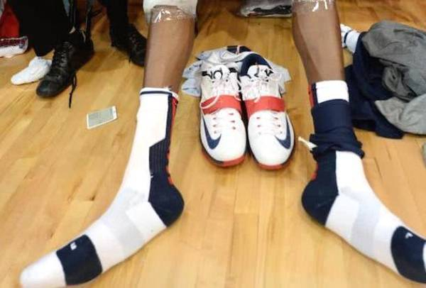 NBA勇士队球星凯文·杜兰特从进入联盟开始就给人一种瘦长的感觉。虽然杜兰特有着消瘦的身体,但是他的力量也没有输给他人,同时这样的身体反倒是给了他更多的灵活。强如杜兰特也有一个梗,那就是在球场上掉鞋,这与他那双酷似镰刀一样的大脚有关,杜兰特穿着55号的鞋码,虽然脚大,但是依旧瘦弱,这也是掉鞋子的原因。
