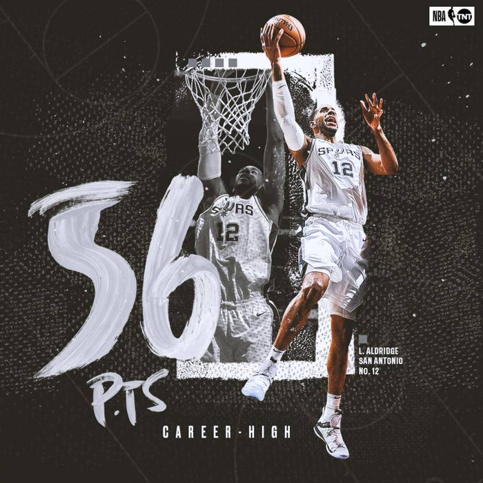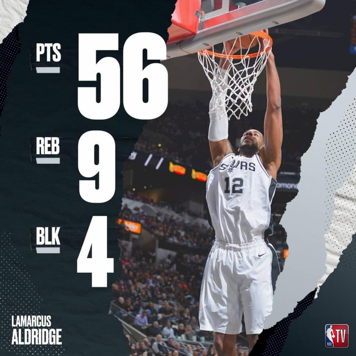同时34岁之后能够砍下55+得分的仅有科比与马龙,阿尔德里奇成为第三位满足这一条件的球员。