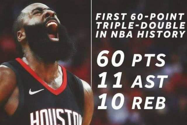 我按照题主的要求,筛选了NBA自1985-1986赛季以来的球员单场60+记录,按照出手次数多少排列,因为NBA的单场数据是在85-86赛季才开始的,之前的数据统计并不完整。结果排在第一位地并不是詹姆斯·哈登,而是卡尔·马龙。虽然哈登曾经在上赛季对阵魔术的比赛中,单场贡献了60分10篮板11助攻的三双数据。