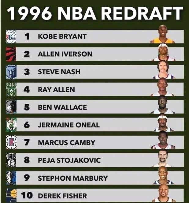 如果现在重排96年的NBA新秀顺位,那么前十球员分别都是谁?