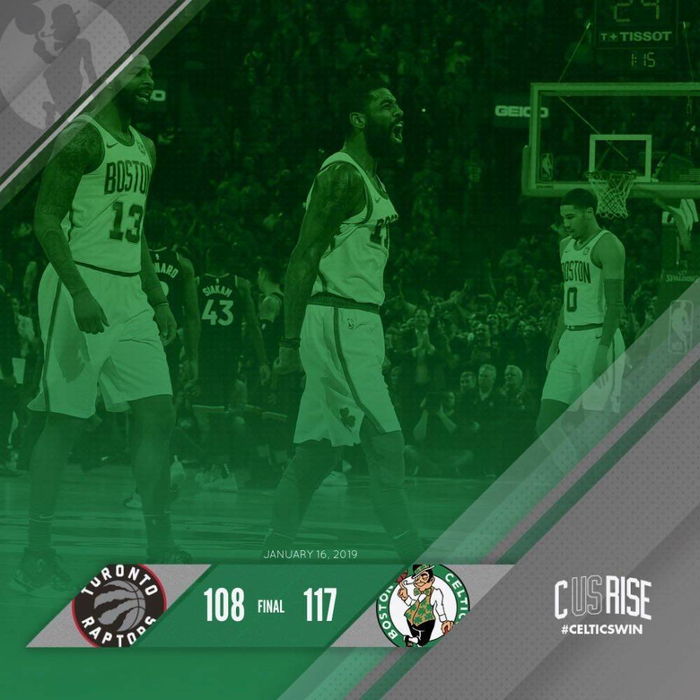 [Post Game Thread] The Boston Celtics (26-18) defeat the Toronto Raptors (33-13), 117-108.