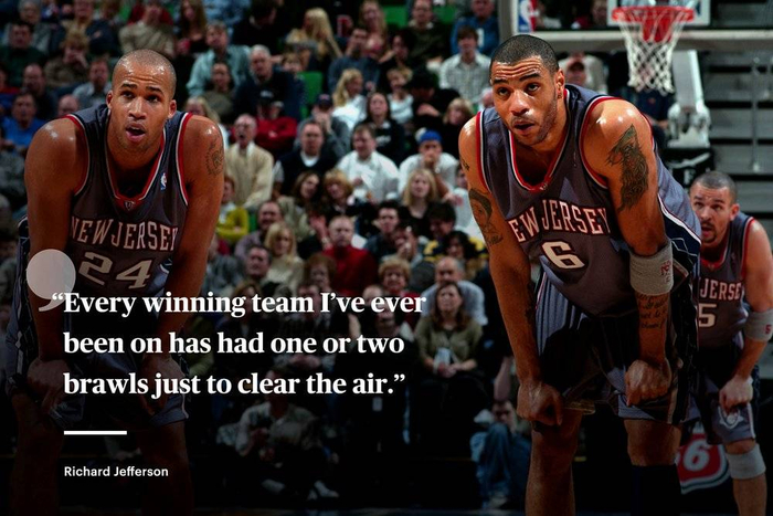 有件事我敢肯定,那就是联盟顶级强队队内一定打过架。也许打架的不一定是球队里的巨星,但是一定会有人动手。我效力过的强队都是这样,总有那么一两次打架事件,不过事后所有矛盾和误会都解决了。