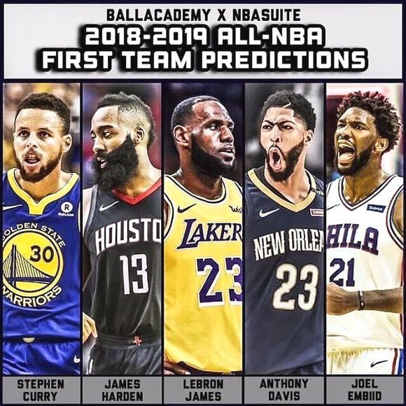 今日,美国一家媒体对2018-2019赛季的最佳阵容进行了预测,这个预测是参考过去半个赛季球员表现以及他们接下来的表现进行的一个预测,最佳阵容每年都会进行评选,第一至第三阵容,一个阵容由两位后场球员和三位锋线球员。