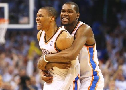 第四场还是雷霆主场 ,威少打了41分钟,27中12,狂砍36分11篮板11助攻的大号三双。杜兰特打了41分钟,24投8中,得到26分11篮板4助攻4抢断3盖帽,进攻端命中率只有33.3%,但是防守端表现非常好。雷霆在主场再下一城,以118-94大胜勇士,此时雷霆3-1领先勇士,几乎锁定了这轮系列赛的胜利,但是谁也没有想到勇士完成了大逆转。