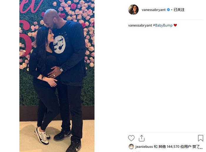 瓦妮莎晒与科比甜蜜合影:怀孕的大肚子