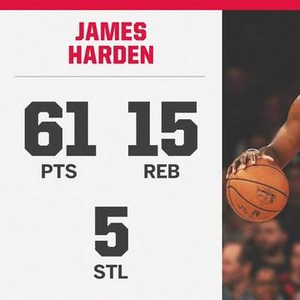 哈登的61分不仅仅创造了个人生涯最高得分,同时也是NBA本赛季最高得分,在2018年11月18日,黄蜂的肯巴-沃克在对阵76人的比赛里得到60分。