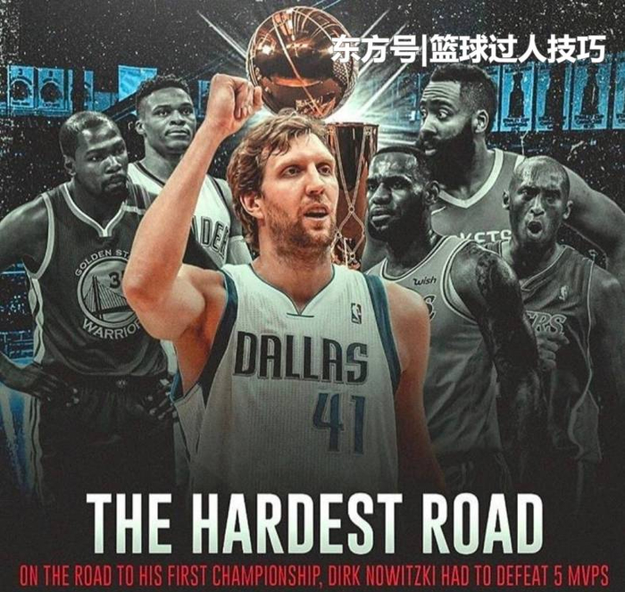 说到最艰难的路,可能只有诺维茨基才配得上说这句话。在2011年季后赛,诺维茨基在西部半决赛干掉了科比的湖人,在西部决赛干掉了坐拥三少的雷霆青年军,又在总决赛干掉了三巨头率领的迈阿密热火。其中科比在2008年当选常规赛MVP,杜兰特、维斯布鲁克和哈登分别在2014年、2017年和2018年荣膺此奖项,而勒布朗-詹姆斯则是四次常规赛MVP获得者。也就是说在2011年的季后赛之旅,德克-诺维茨基一个人单挑五个常规赛MVP,并且把他们一一斩落马下。2、代表“正义”掀翻迈阿密热火