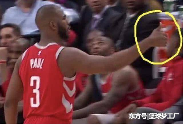 保罗:上赛季西部首轮,火箭与森林狼的比赛中,因为大比分领先火箭在吹罚尺度上受到了不公平的吹罚,很多球裁判都故意向着森林狼,其中保罗本场多次被吹罚犯规,其中在比赛最后三分钟,保罗在和唐斯卡位争抢篮板时,再次被裁判吹罚犯规,而他也就此六犯离场,看到球队落后15分,保罗知道这场输定了,而这一切跟裁判有很大关系,因此他直接冲着裁判竖起了大拇指,极具嘲讽。