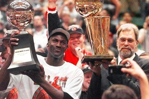 我们可以来算一些,首先看看出勤率,乔丹生涯前面13年,除了8586赛季的遭遇重伤和9495赛季的赛季中途复出,其他赛季都是全勤或者接近全勤的,那我们就算第一次不退役的话,两个赛季出勤75场好了,场均按乔丹生涯平均的30分来算,毕竟当时乔丹还是巅峰期。这样两个赛季就能拿4500分,减去9495赛季乔丹实际拿到的457分,那么还是可以拿到4043分。