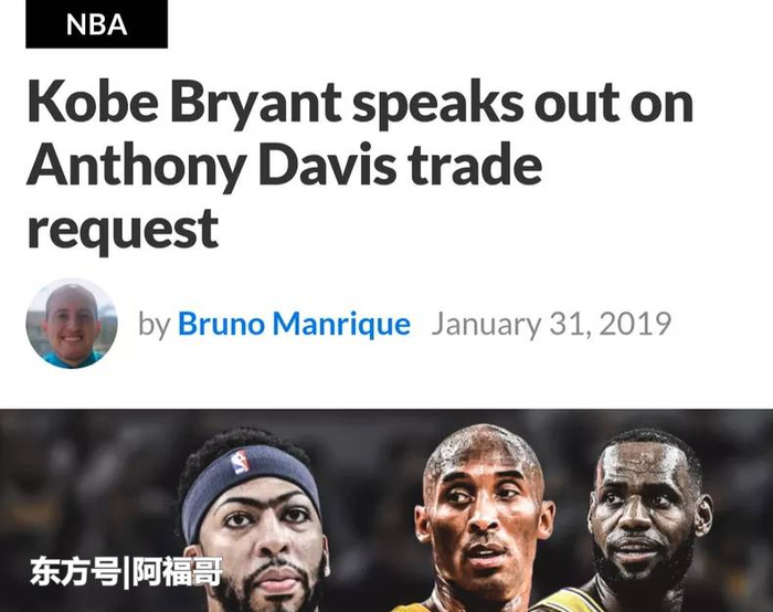 北京时间2月1号,距离浓眉戴维斯公开要求交易已经过去两天时间了,在这两天时间里有多支球队都在联系鹈鹕总经理试图交易浓眉,但是鹈鹕队总经理已经拒接电话,明确表示在下个交易截止日之前不会交易浓眉。但是浓眉戴维斯却因为公开交易,被球迷丑化为恶人形象。近日湖人传奇科比布莱恩特公开为戴维斯发声,一针见血指出戴维斯寻求交易的原因。