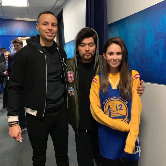 库里与周杰伦夫妇合影,昆凌化身迷妹,库里化身场外壮汉