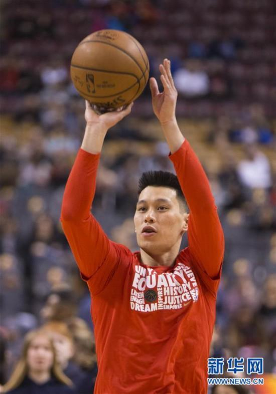 猛龙队球员林书豪在赛前训练中。新华社发(邹峥摄)