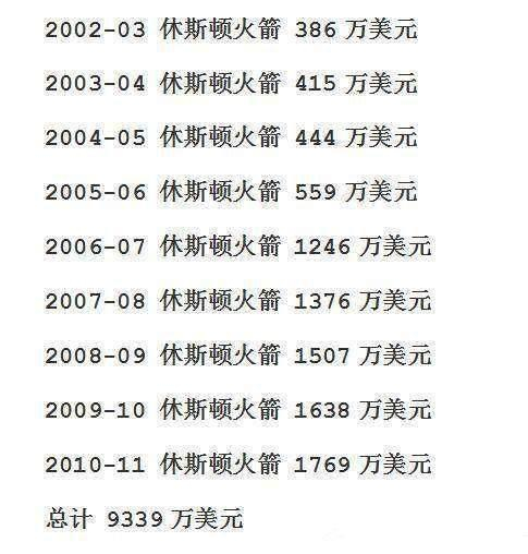 在为NBA火箭队效力的九年时间里,姚明共从球队获得的薪资收入就有9339美元!根据当年的汇率,就是将近8亿人民币。是当时的NBA联盟里的顶薪存在,同时期的詹姆斯,年薪都不如姚明。