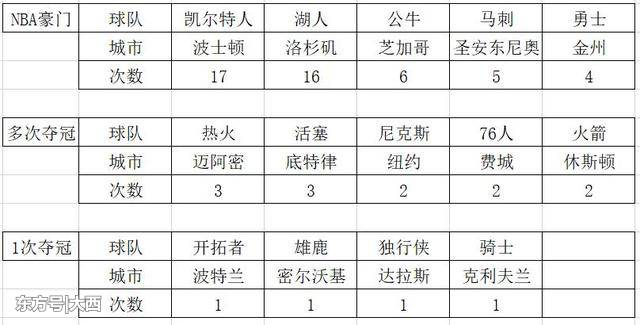 拿到过3次总冠军的球队有迈阿密热火和底特律活塞,底特律是美国的汽车之城,影响力十足。迈阿密是富饶的旅游城市,虽然算不上大球市,但也处于中上水准。拿到2次总冠军的有尼克斯、76人和火箭队。纽约是NBA最具市场、吸金能力最强的球队,费城和休斯顿也都是大城市,球市也都是中上水准。