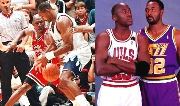 98年总决赛第六场,在犹他爵士主场进行,比赛打至最后37秒左右,爵士86-85领先公牛1分,此时的爵士手握球权,在24秒进攻走完大半之后,篮球给到了篮下的马龙,他是球队最稳定的得分点,马龙刚接球就被协防过来的乔丹切掉,马龙倒地救球,但乔丹已经掌握球权。